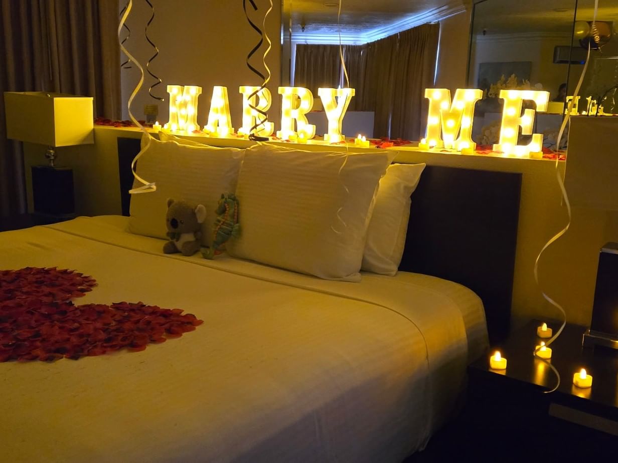Our proposal in room set up is designed to create an unforgettable experience for you and your soon-to-be fiancé.